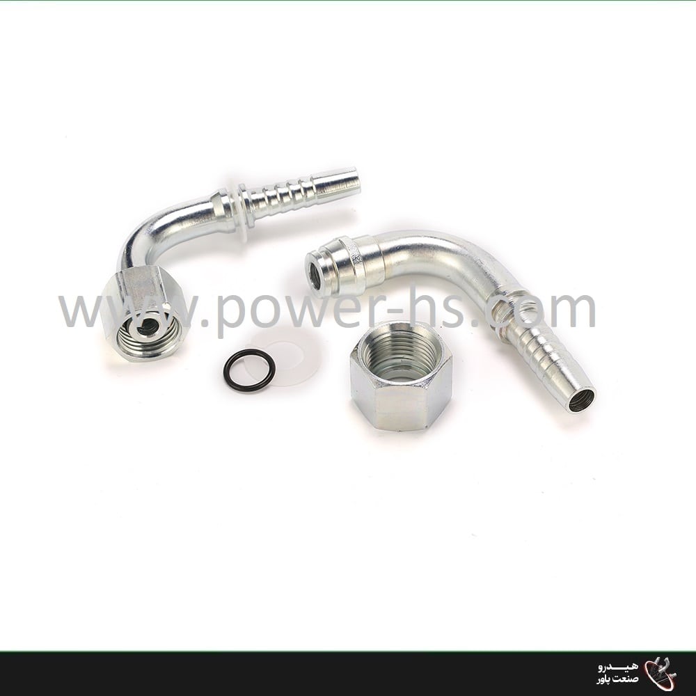 مهره دنباله خم انگلیسی °BSP Female 60° Cone 90 یکی از اتصالات هیدرولیک استاندارد است که برای اتصال شیلنگ‌های هیدرولیک در مسیرهای زاویه‌دار استفاده می‌شود. این اتصال دارای رزوه موازی BSP (British Standard Pipe Parallel) بوده و در انتهای خود دارای زاویه مخروطی ۶۰ درجه (60° Cone) است که باعث ایجاد آب‌بندی فلز به فلز (Metal to Metal Seal) با سری نر متناظر می‌گردد. این نوع مهره معمولاً در مسیرهایی استفاده می‌شود که فضای مستقیم برای نصب وجود ندارد یا شیلنگ نیاز به تغییر جهت ۴۵ یا ۹۰ درجه‌ای دارد.